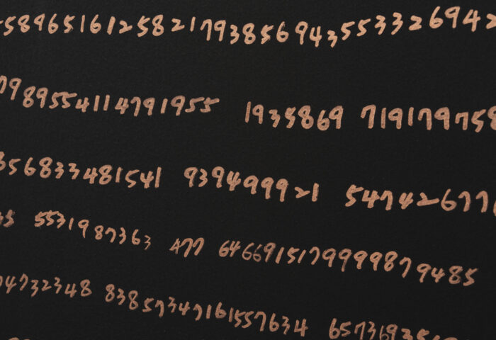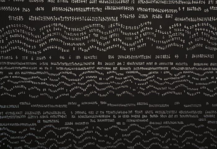 《无量数(Innumerable Counts)》由无数随机排列的数字组成,其中一个显著的特征是:数字“0”被隐去,留下了空白。每一个数字都代表着从9到1的倒计时,延续了艺术家在其他作品中使用LED数字的逻辑;而那些空白,则象征着计数归零的时刻。