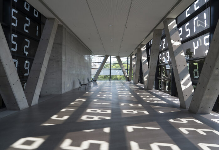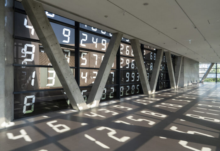 这件特定场域装置中,每扇窗户展示的数字,都由合作和偶发性的方式决定。这些数字由亚洲大学学生与美术馆工作人员,转动数字转盘随机选定。