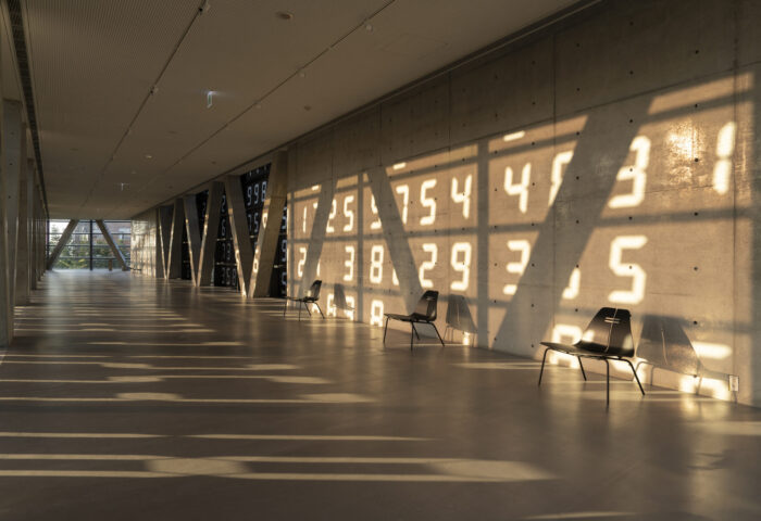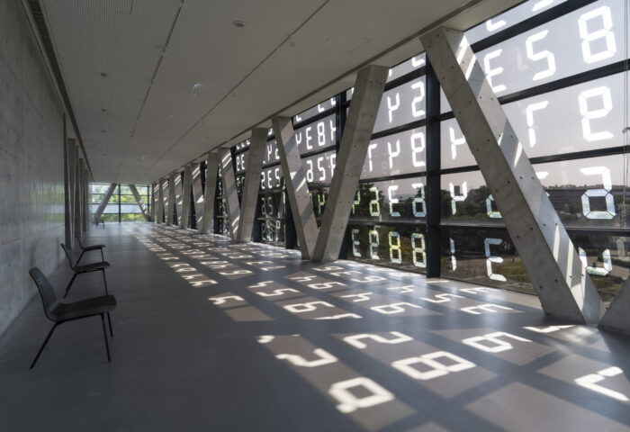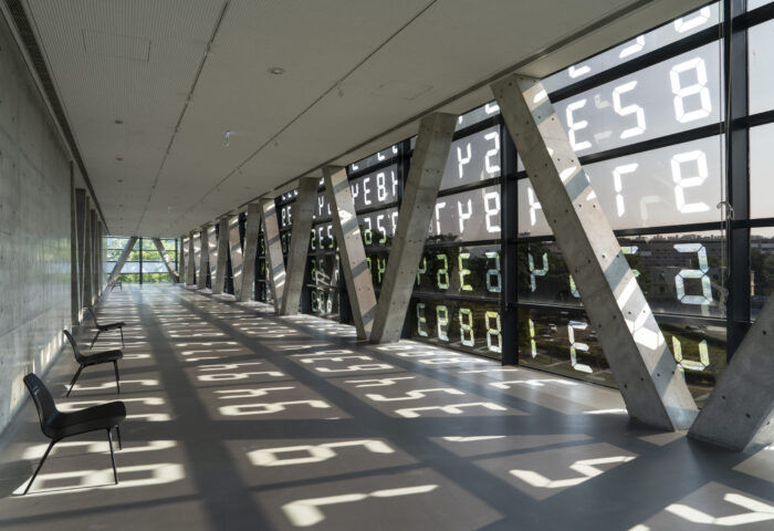 In ‘Changing Landscape/Changing Museum,’ by placing half-mirrors on the windows of the museum and cutting them out with numbers that symbolize time, the view outside landscape is continuously changed.