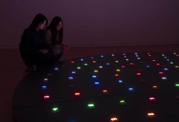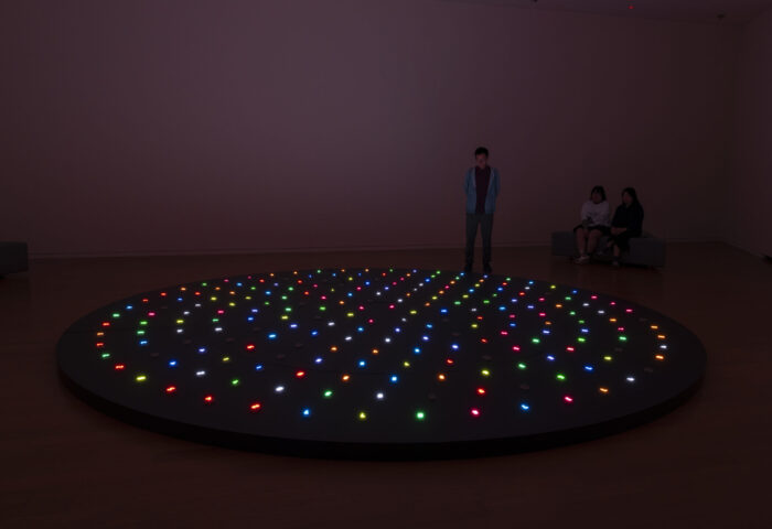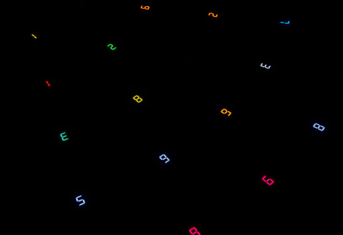 In this work, these 100 states are expressed through the use of ten digits—0 through 9—and ten different colors, which continuously shift and transform over time. Each number symbolizes “life”, while the absence of a number—a blank space—represents “death” or “emptiness”. This cycle of life and death expresses both the transience and the eternal rhythm of existence.